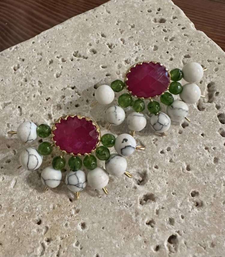 Bronz üzerine altın kaplama, havlit, yeşim, garnet taşı