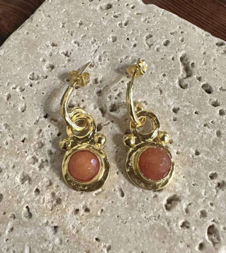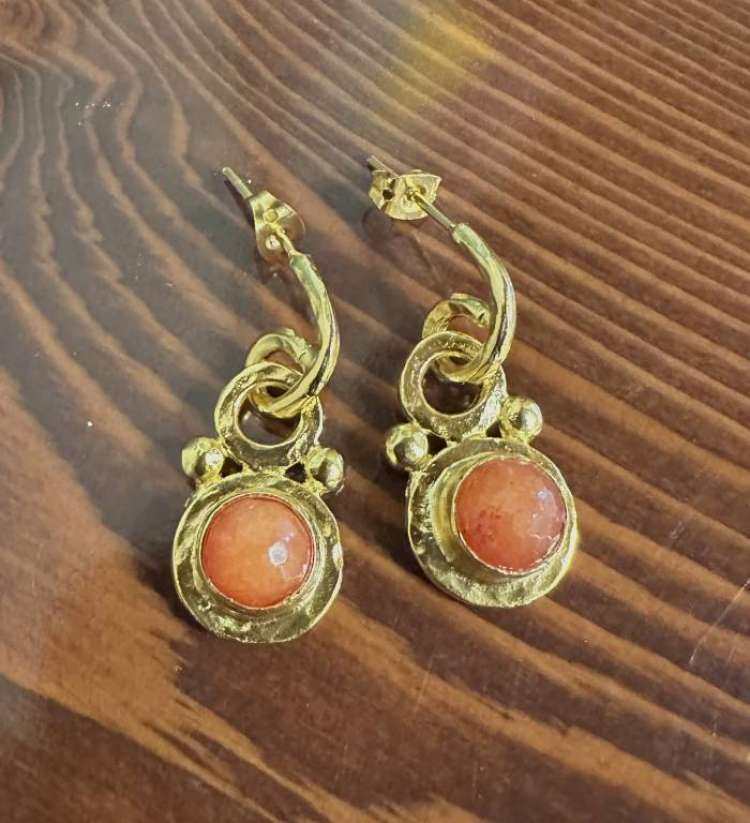Bronz üzerine altın kaplama mercan küpe