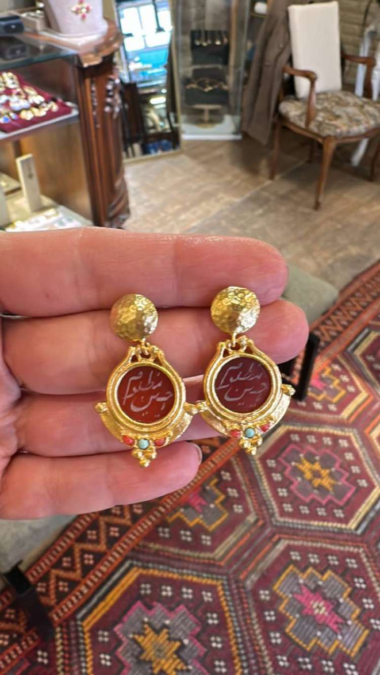 Bronz üzerine altın kaplama, el yapımı, akik küpe