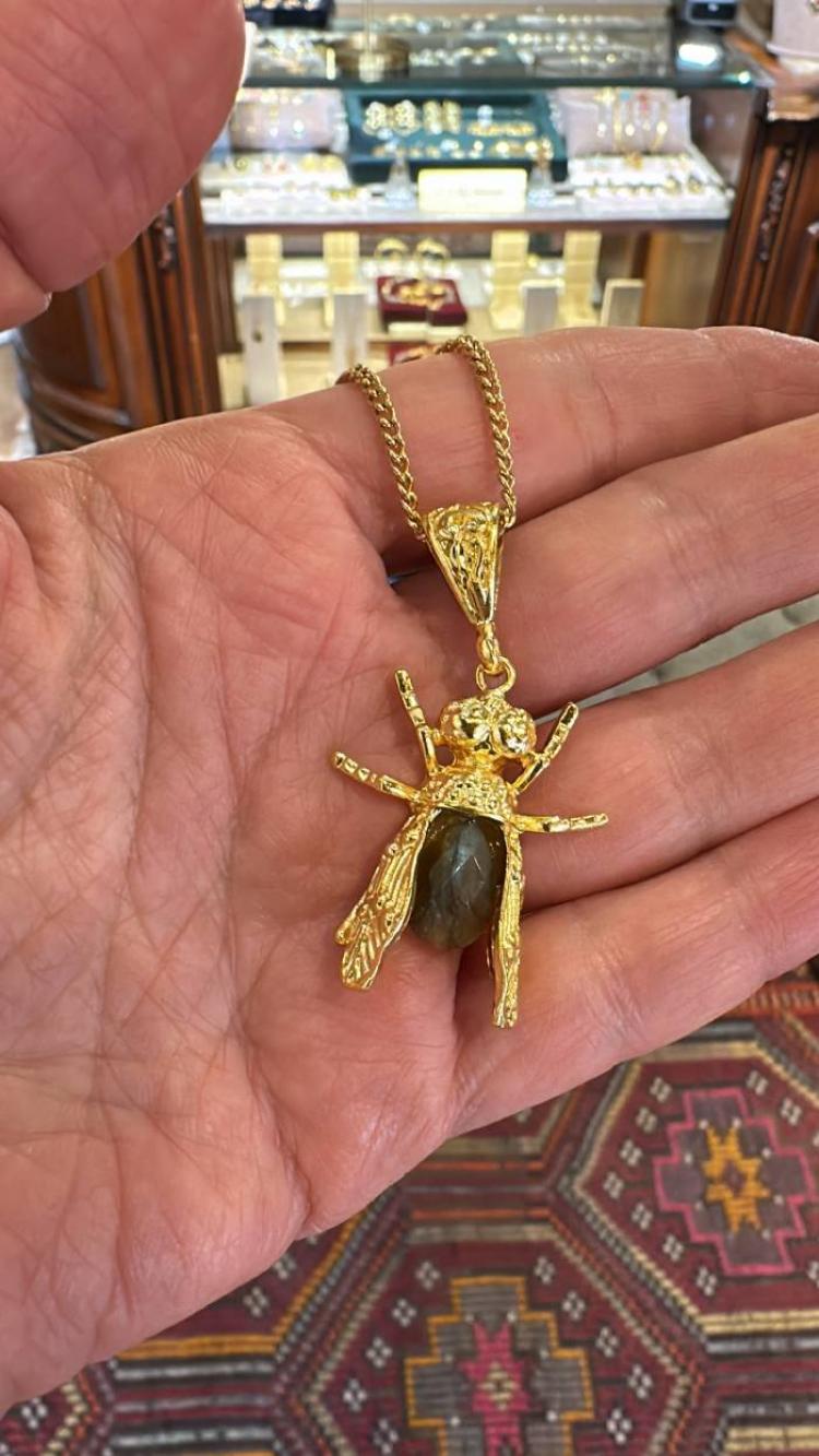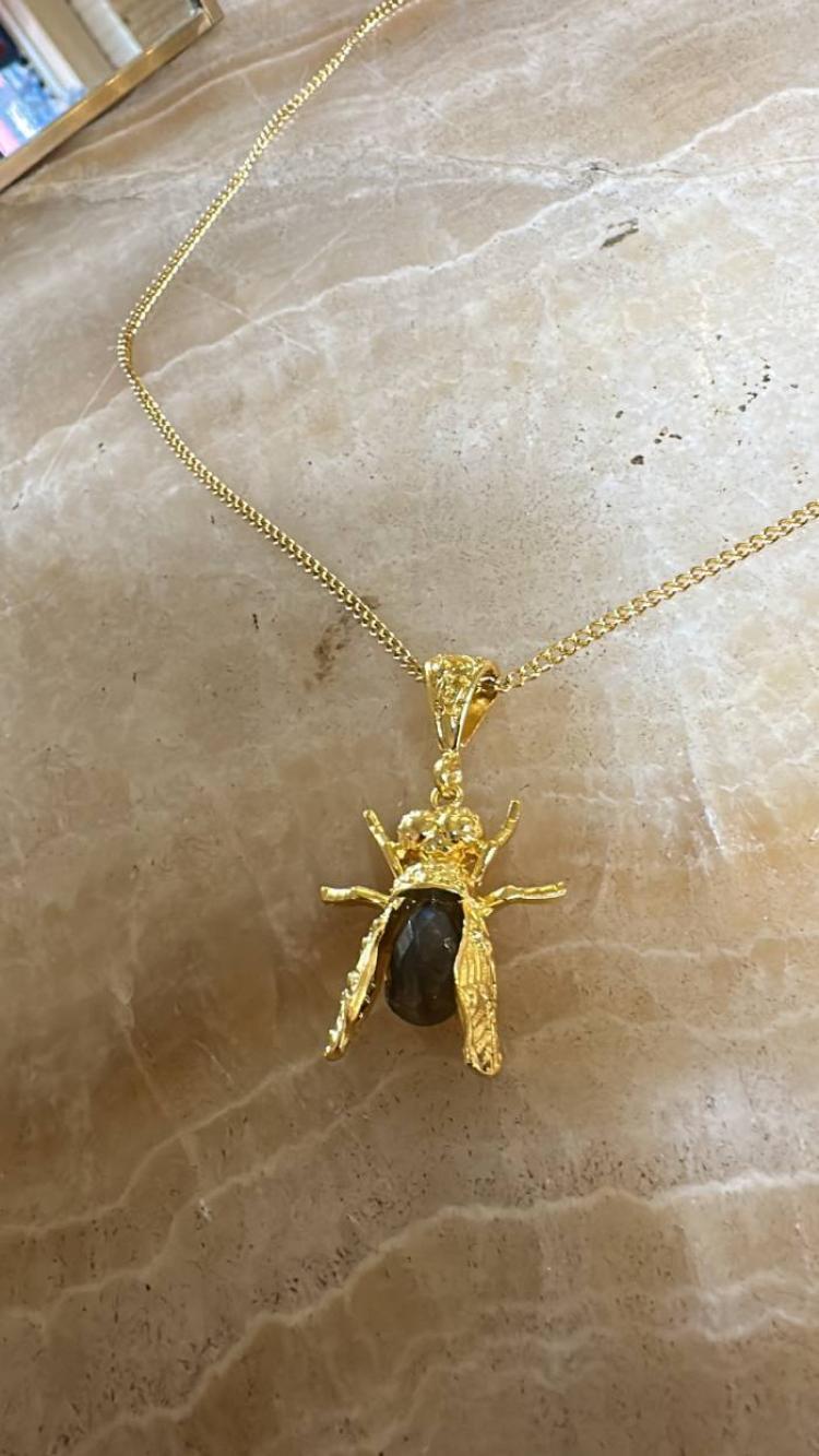 Bronz üzerine altın kaplama, el yapımı, labradorit kolye