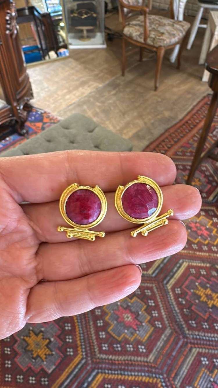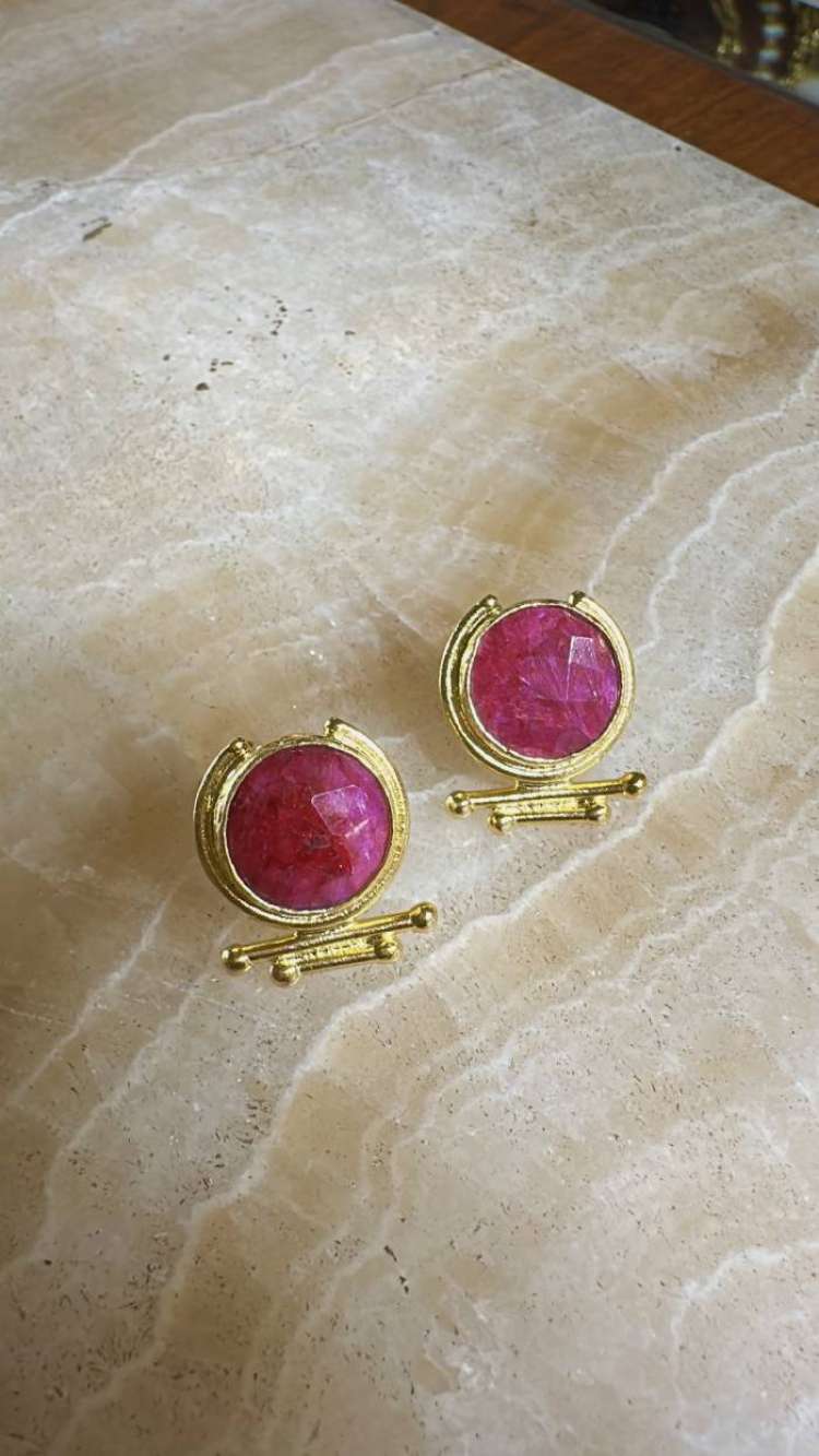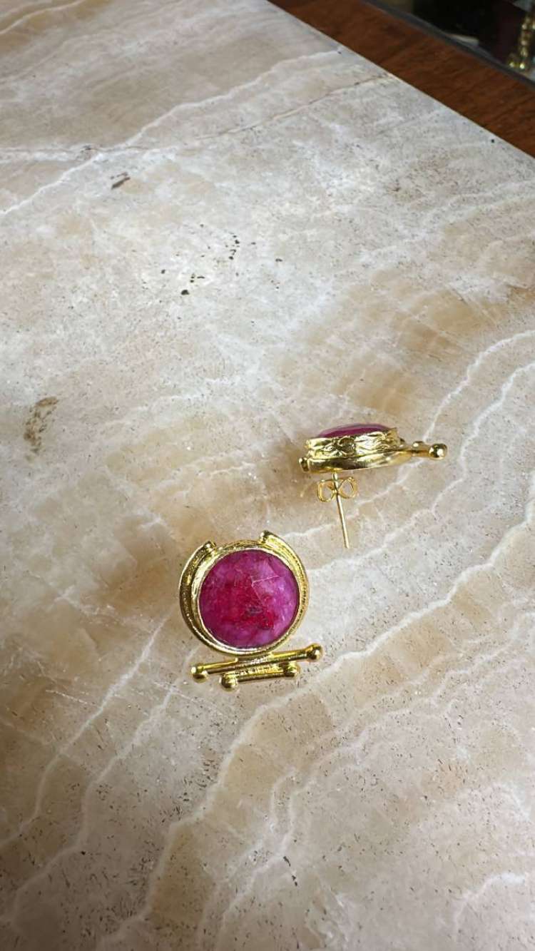 Bronz üzerine altın kaplama, el yapımı, yakut küpe
