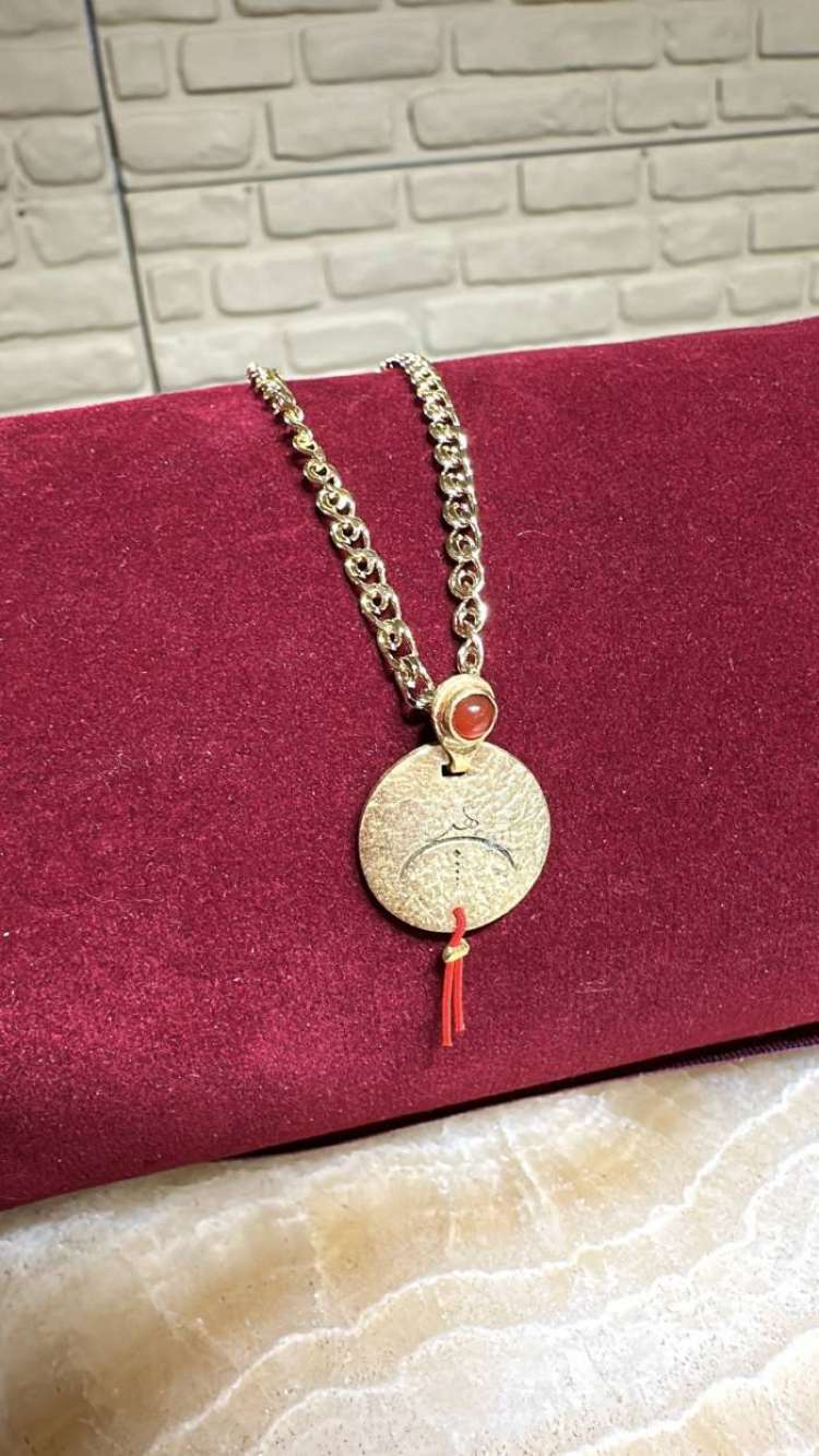 Gümüş üzerine altın kaplama, el yapımı, akik hiç kolye