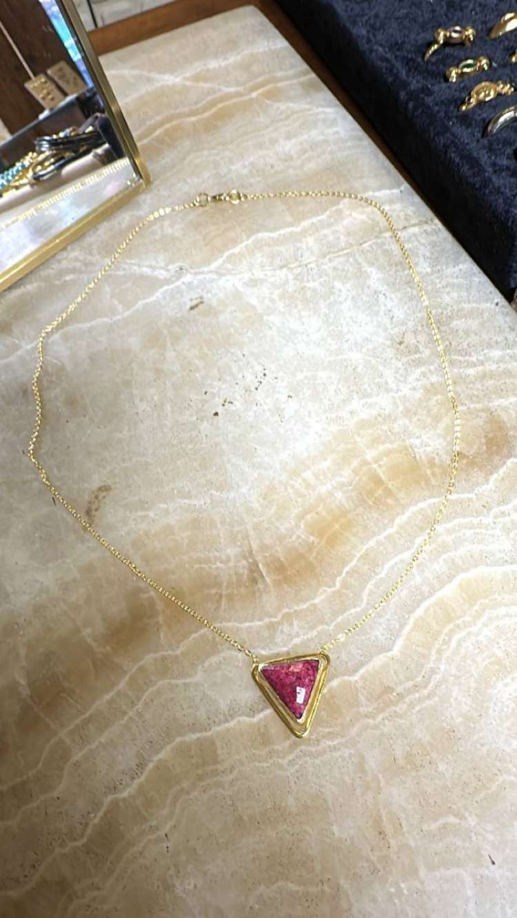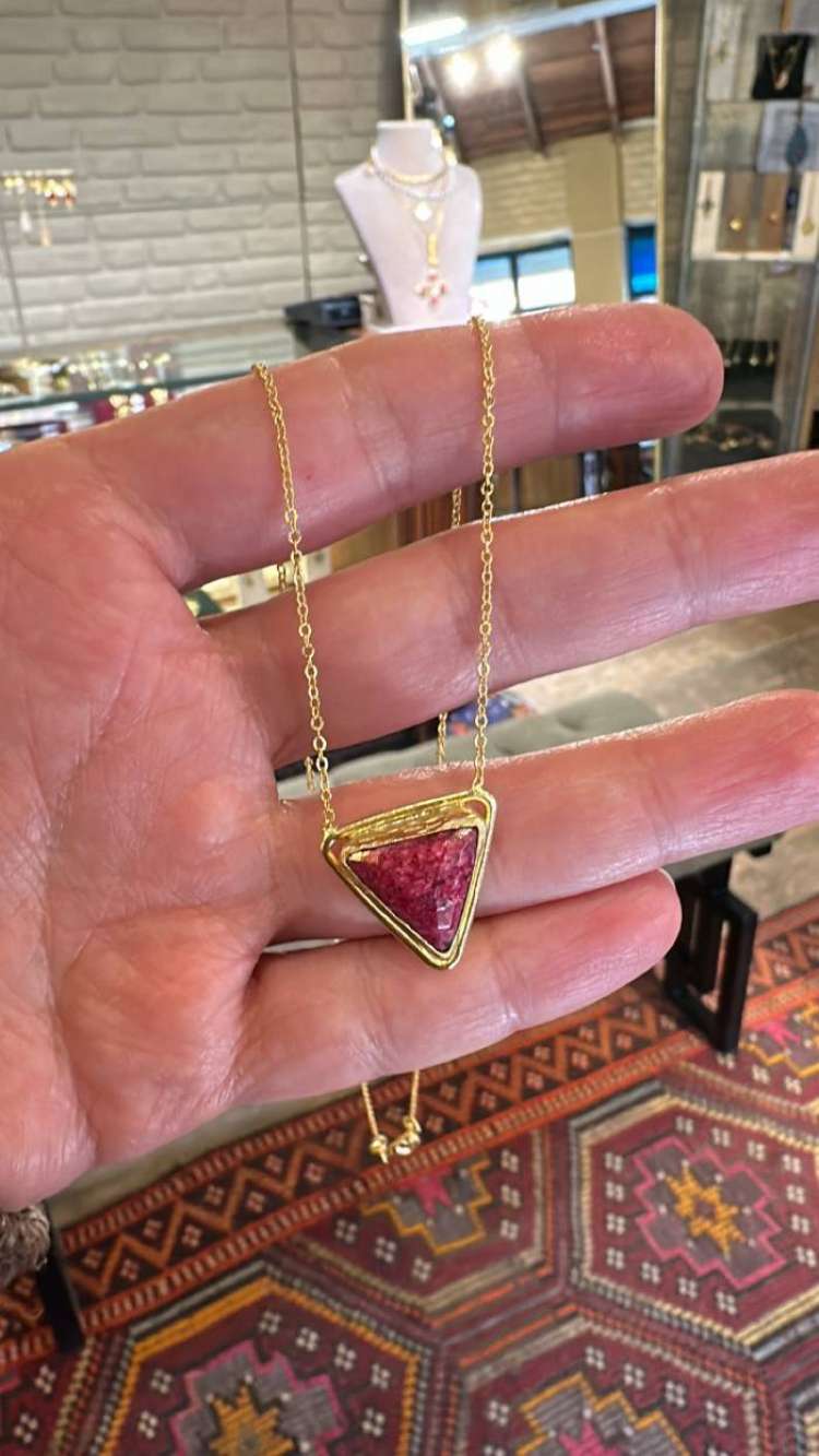 Bronz üzerine altın kaplama, el yapım, yakut kolye