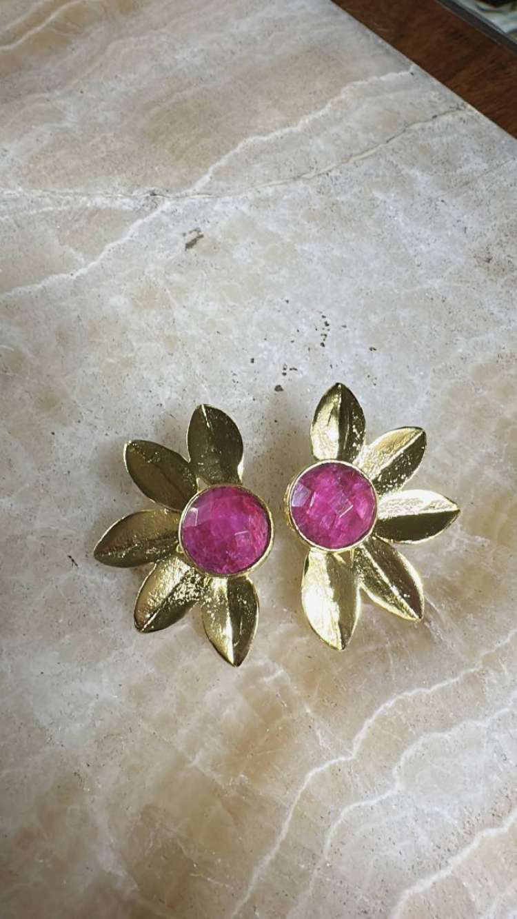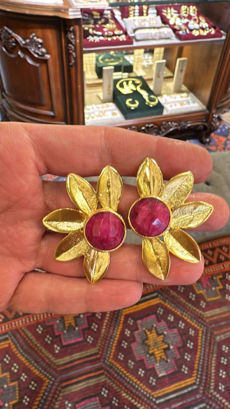 Bronz üzerine altın kaplama, el yapımı, yakut küpe