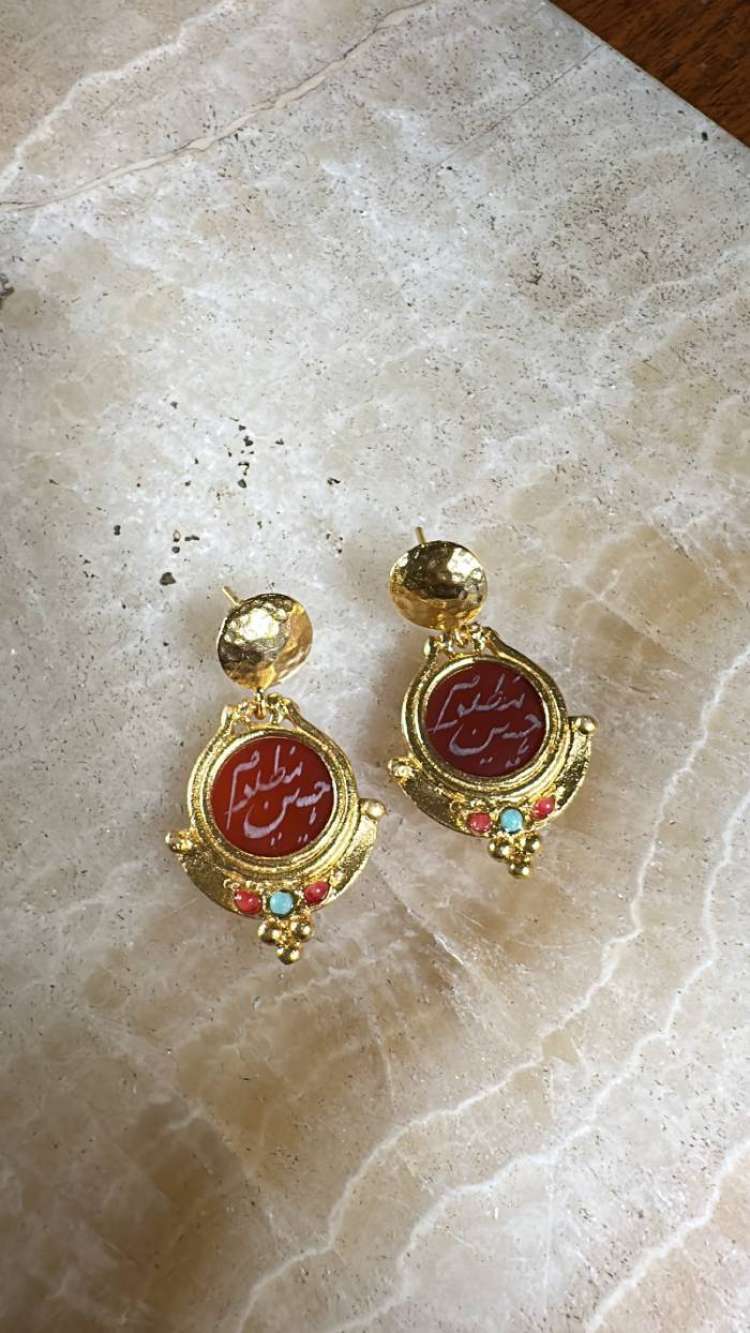 Bronz üzerine altın kaplama, el yapımı, akik küpe