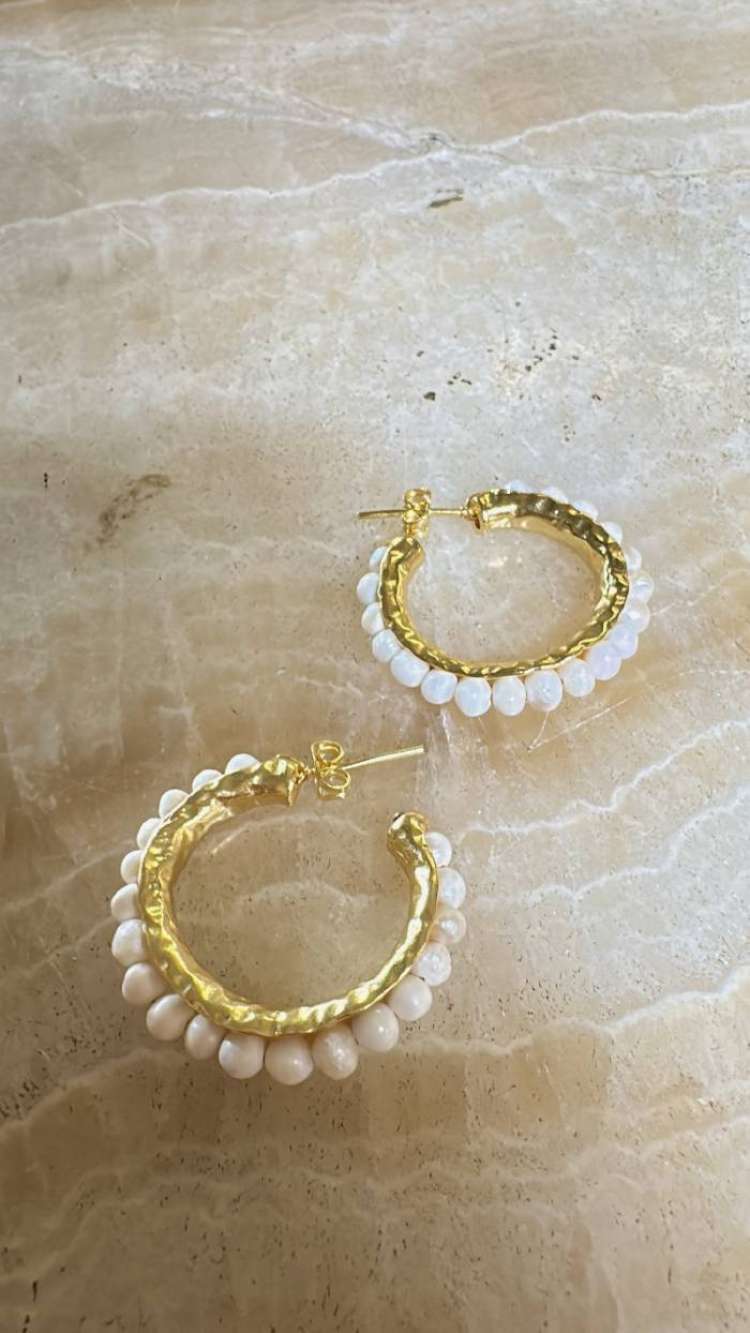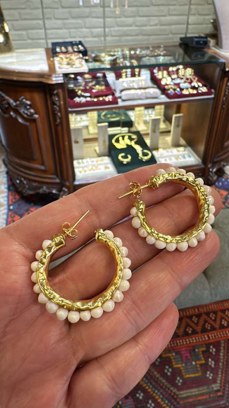 Bronz üzerine altın kaplama,  el yapımı, kültür incisi halka küpe