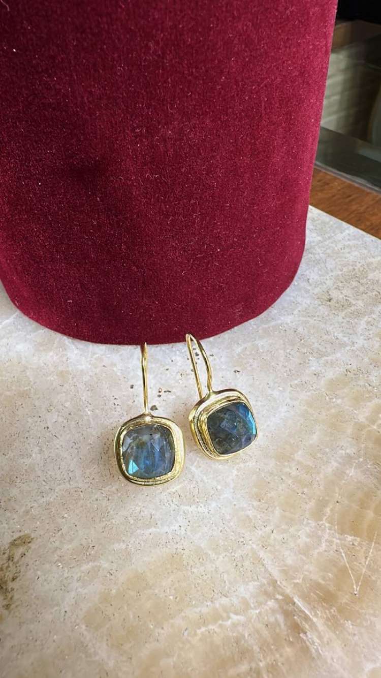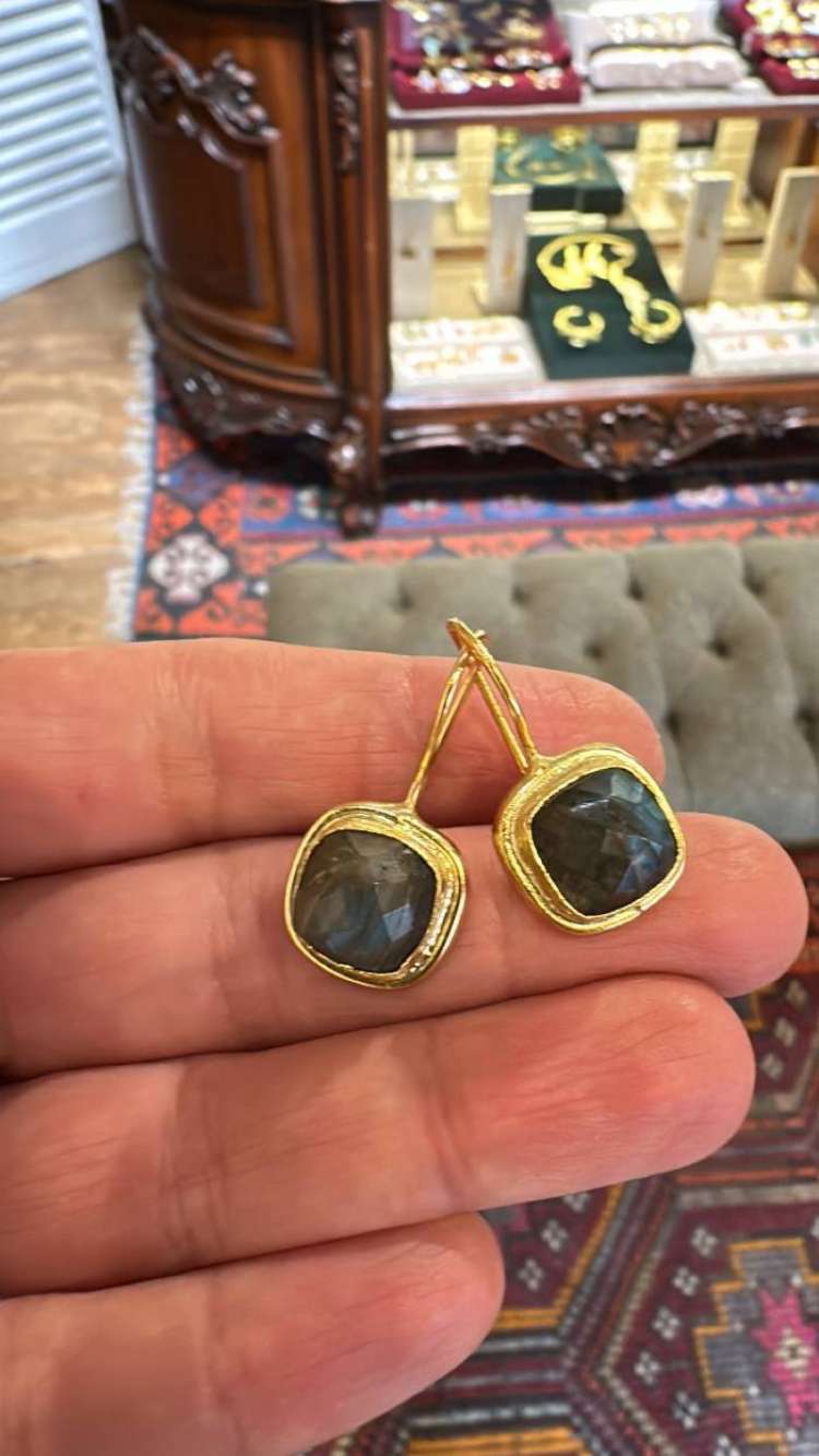 Bronz üzerine altın kaplama, el yapımı, labradorit küpe